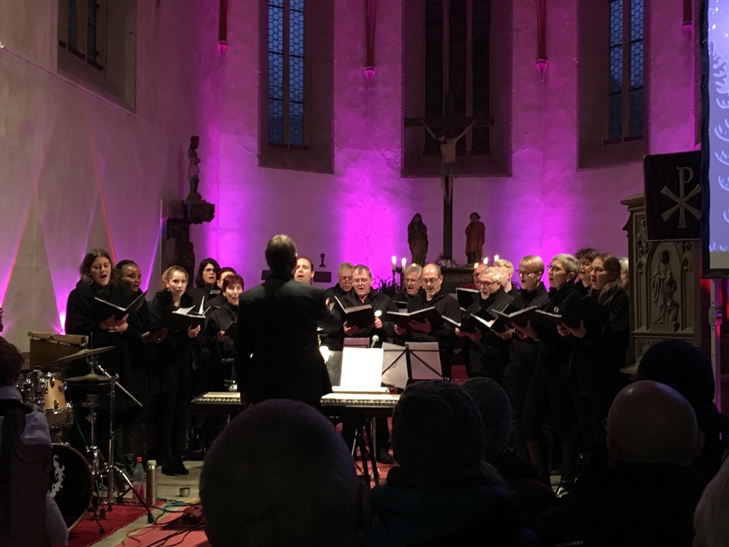 Kein Platz war mehr frei und sogar zusätzliche Stühle mussten in der Heilig-Geist Kirche gestellt werden. Bereits zum vierten Mal waren wir am Samstag, den 08. Dezember in dem beschaulichen Städchen. Inzwischen schon traditionell in verschiedene Blöcke aufgeteilt, die sich alle thematisch um das Licht drehten, gaben wir unser Gospel-, Rock- und Poprepertoire zum Besten.