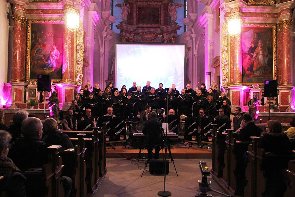 Zum Abschluss wurde das Vocalensemble noch einmal von der Blaskapelle „Gschmeidigs Blechle“ beim „Andachtsjodler“ begleitet. Die Wallfahrtskirche erstrahlte in einem mystischen Licht, eine besinnliche Stimmung war zu spüren.