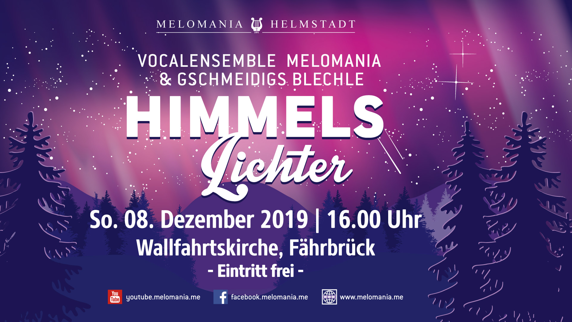 Die stade und besinnliche Zeit bricht an! Bereits zum zweiten Mal gastieren wir in Fährbrück und gestalten in diesem Jahr, unter dem Titel "Himmelslichter", für Euch am Sonntag, den 08. Dezember (16.00 Uhr) ein vorweihnachtliches Konzert in der Wallfahrtskiche. Der Eintritt ist frei, aber mit Spenden könnt Ihr unsere Arbeit sehr gerne unterstützen.