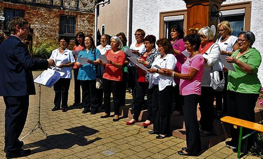 Passend zum Thema sang die „Femina Melomania" am Kiesbrunnen das Lied „Wenn alle Brünnlein fließen". Der MGV Uettingen trug Lieder vor wie „Bild dir nichts ein" und „Freunde fürs Leben".