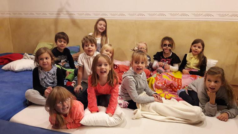 Erster Teil des Ferienprogramms war eine Märchenstunde für das Spatzennest. Mit der Geschichte „Zehn kleine Sterne“ entführte die Märchenerzählerin Sonja Höcher die Zuhörer in eine Märchenwelt, die Gedanken und Phantasien anregte. Der Kinderchor traf sich im zweiten Teil des Ferienprogrammes, das unter dem Motto „Geisterstunde“ angeboten wurde. Geistergeschichten für Kinder sind zu Halloween beim Ferienprogramm der Melomanen besonders beliebt. Eine Mitmachgeschichte vom König und der Königin, Prinz und Prinzessin, von Kutschern, Pferden und einem Geist erzählte Sonja Höcher der lauschenden und aktiven kleinen Gesellschaft.